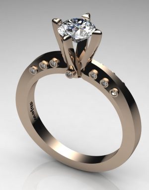 Μονόπετρο Δαχτυλίδι 14Κ ρόζ χρυσό με λευκό Λίθο (επιλογές) 011