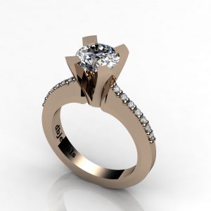 Μονόπετρο Δαχτυλίδι 14Κ ρόζ χρυσό με λευκό Λίθο (επιλογές) 003
