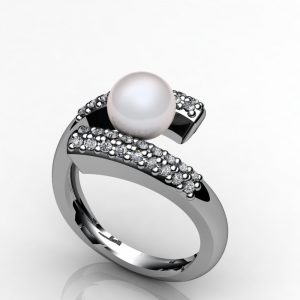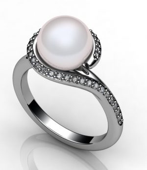 Δαχτυλίδι 14Κ λευκό χρυσό με Λίθους & μαργαριτάρι (επιλογές) 051