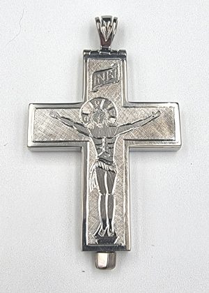 Εκκλησιαστικός Σταυρός 14Κ λευκό χρυσό & αλυσίδα 80