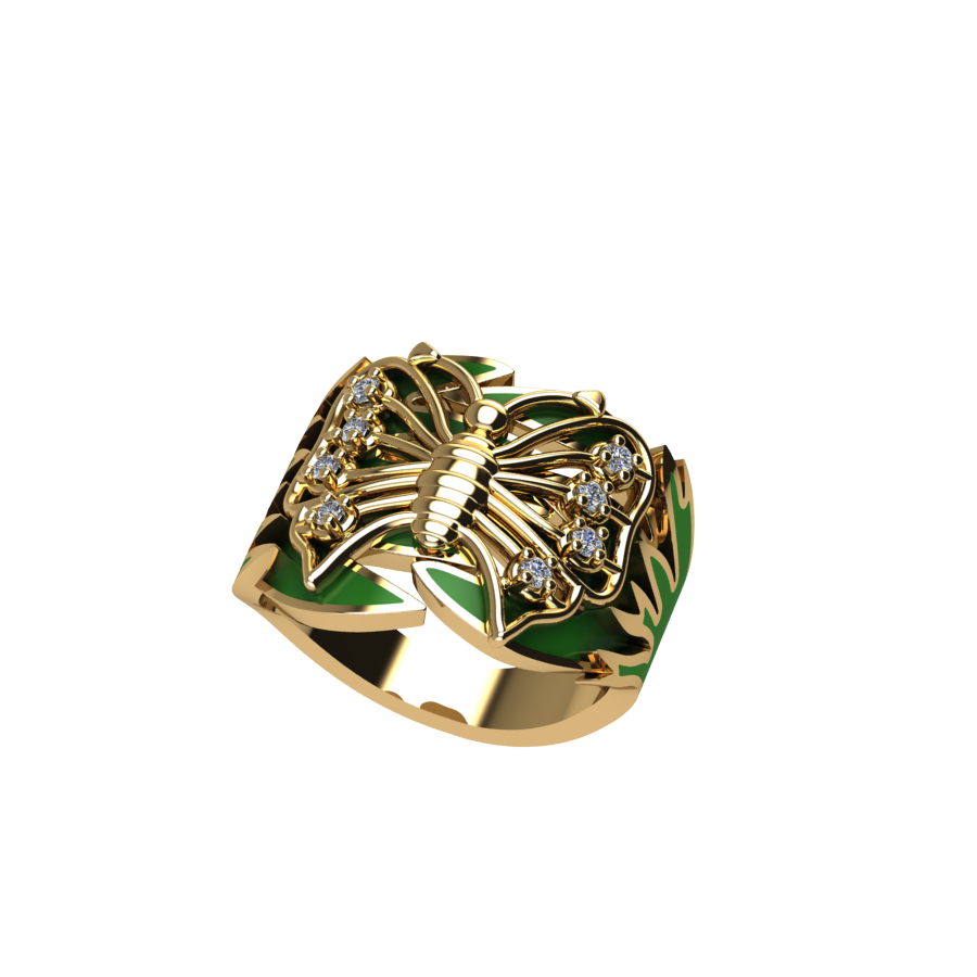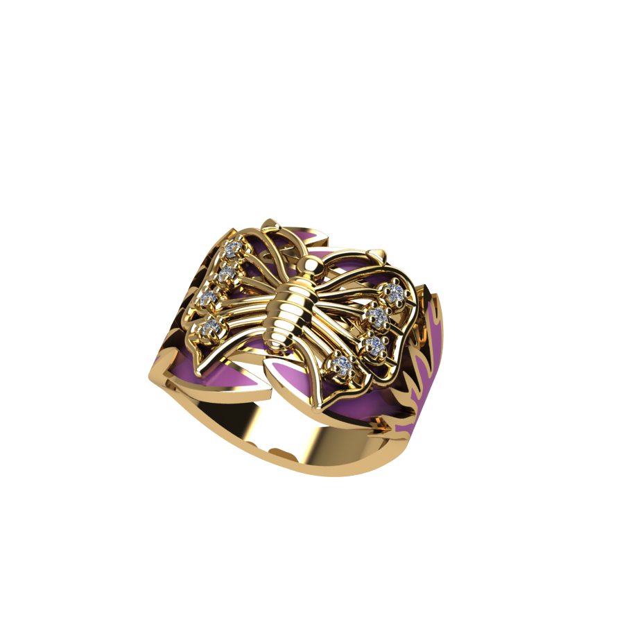 Δαχτυλίδι πεταλούδα σε ποικιλία χρώματος σμάλτου με λευκές πέτρες