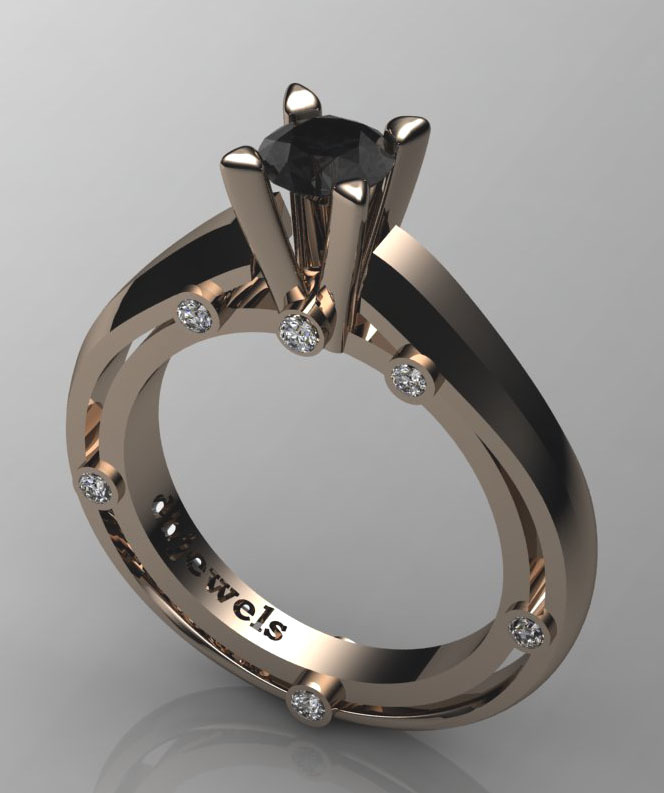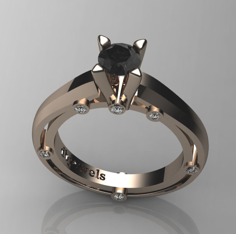 Δαχτυλίδι 14Κ ρόζ χρυσό με μαύρο Διαμάντι (επιλογές) 064