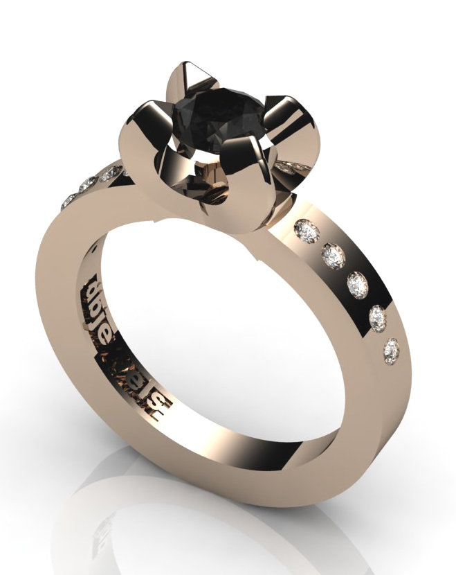 Δαχτυλίδι 14Κ ρόζ χρυσό με μαύρο Διαμάντι (επιλογές) 066