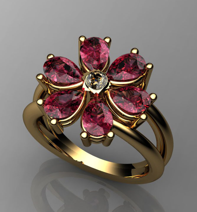 Δαχτυλίδι 14Κ ρόζ χρυσό με Λίθους (επιλογές) 034