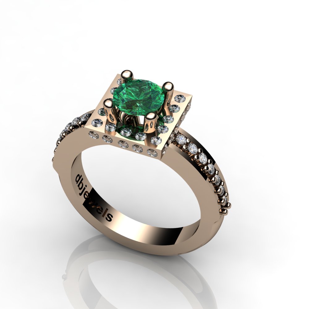 Δαχτυλίδι 14Κ ρόζ Χρυσό με Σμαράγδι & Μπριγιάν (επιλογές) ΕΜ0054