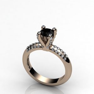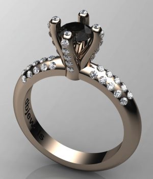 Δαχτυλίδι 14Κ ρόζ χρυσό με μαύρο Διαμάντι (επιλογές) 073B
