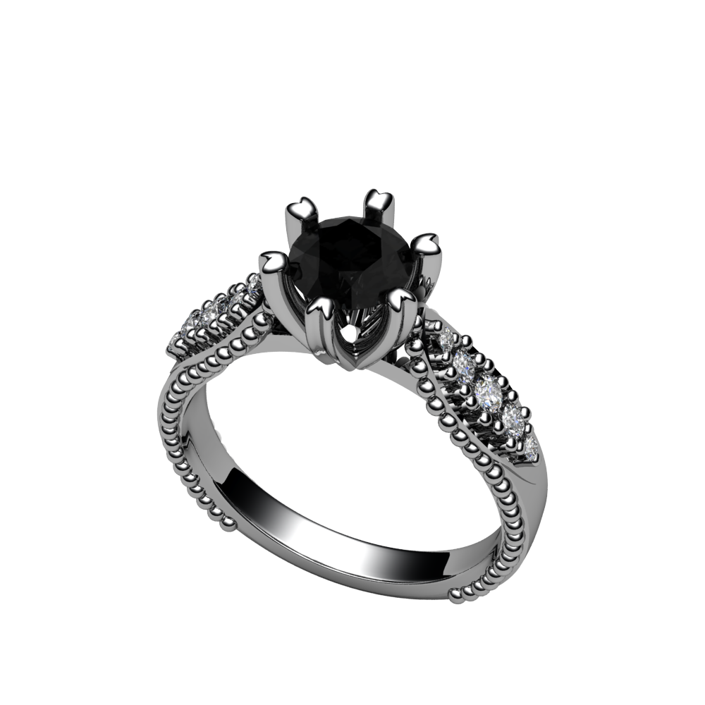 Δεμένο με μαύρο Διαμάντι μεγέθους 0,90/1.00 Carat weight αρίστης ποιότητος & Πλαινά Μπριγιάν με Πιστοποιητικό