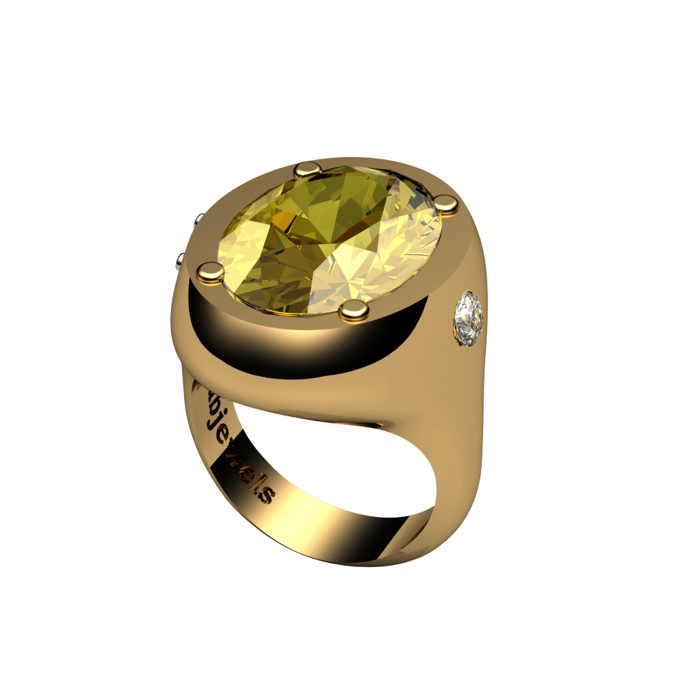 Eνα βαρύ και επιβλιτικό δαχτυλίδι βάρους 20+ γραμμ 14Κ με μέγεθος κέντρικού λίθου 12μμ Χ 18μμ – Μπριγιάν 2 Χ 0,17 (F/VVS)